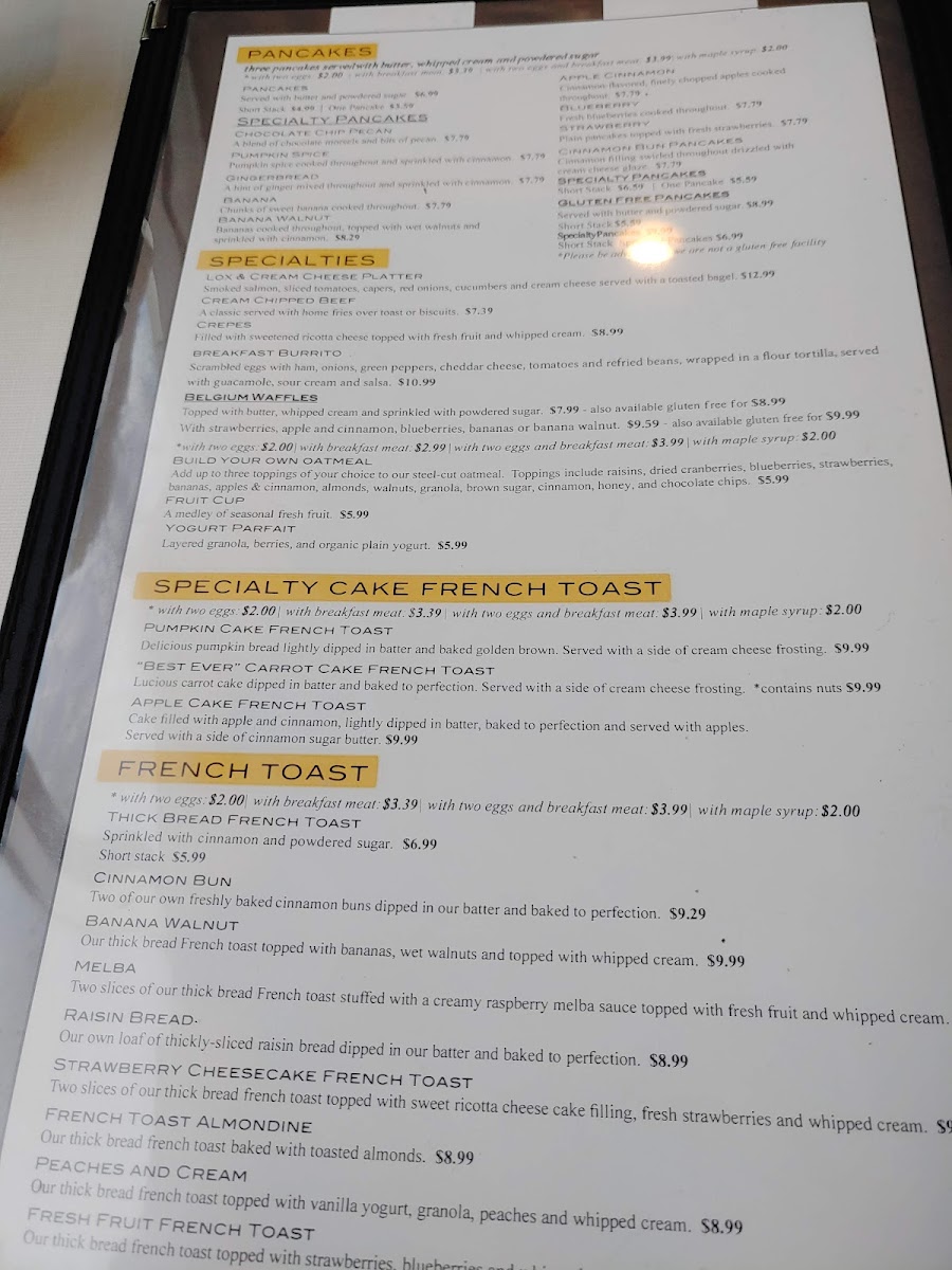 Our thick bread french toast topped with bananas, wet walnuts and topped with whipped cream. *This contains nuts.
